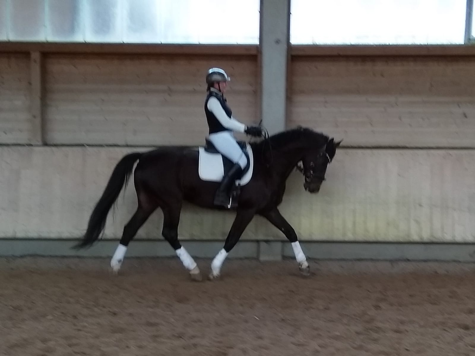 Bildschöner, sehr schicker großrahmiger schwarzbrauner Wallach mit 3 sehr guten Grundgangarten und ehrlichem Charakter. |
